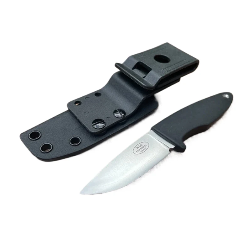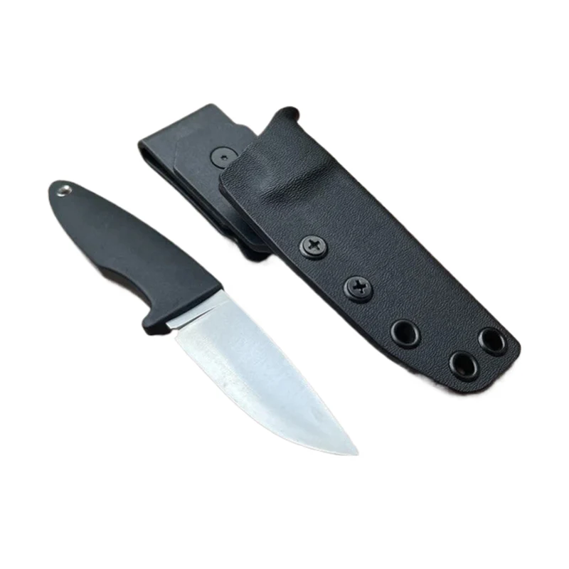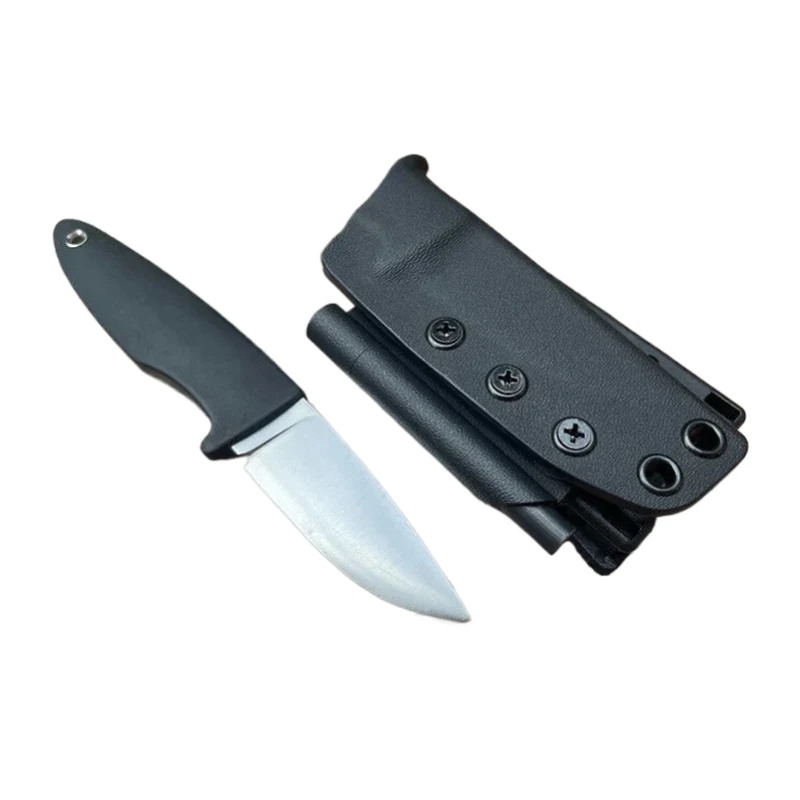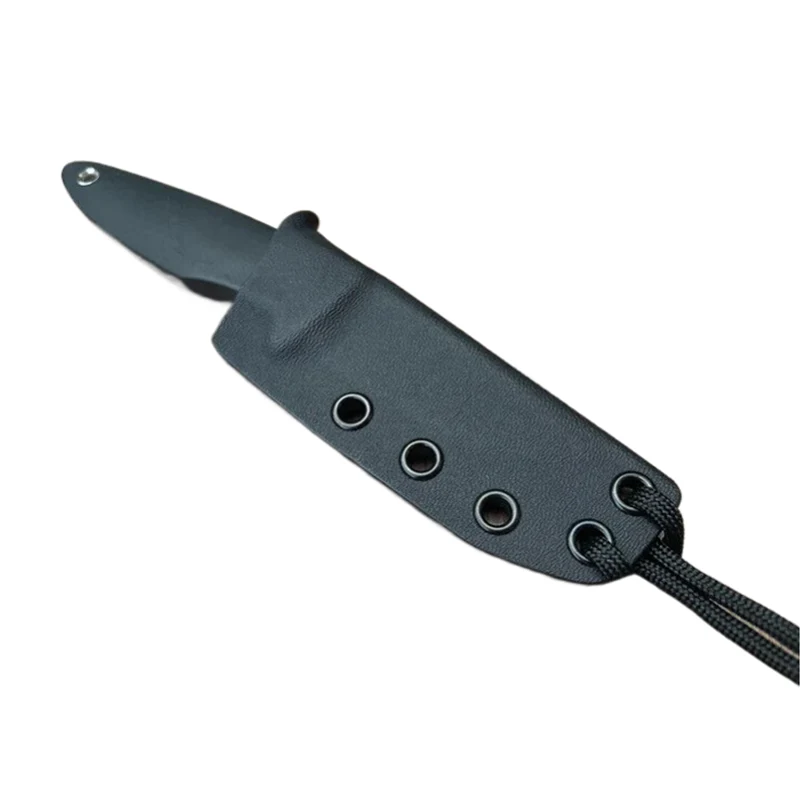 Ang pahalang na kaluban ng kutsilyo na nakapirming talim ay hinubog din upang ganap na magkasya, na nasa isip ang malambot na hawakan. Ang hugis ng Kydex sheath ay mainam din para sa pagsusuot ng Mini na kutsilyo sa leeg bilang isang kutsilyo sa leeg.