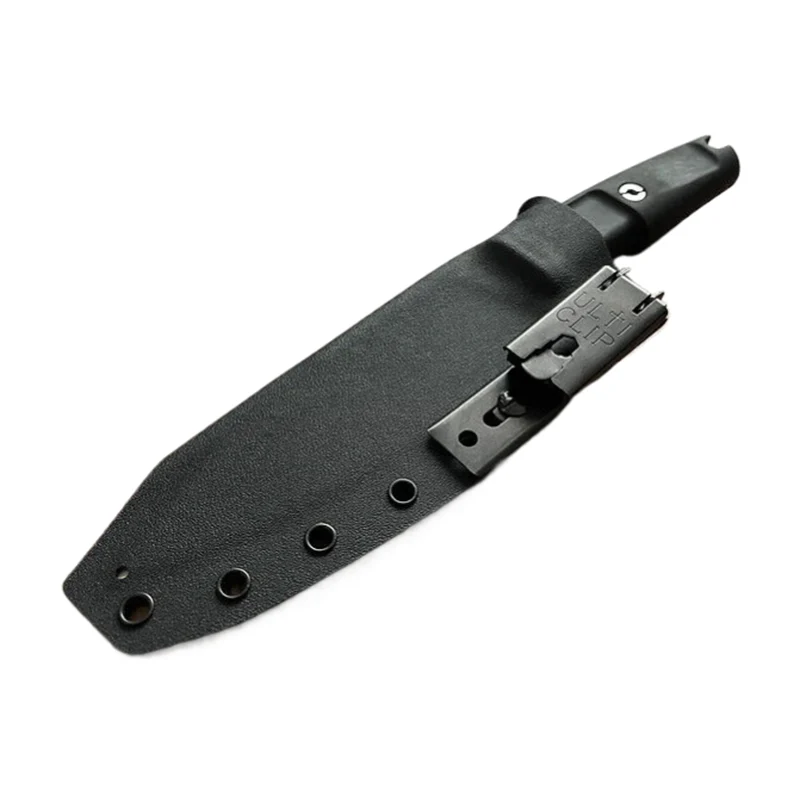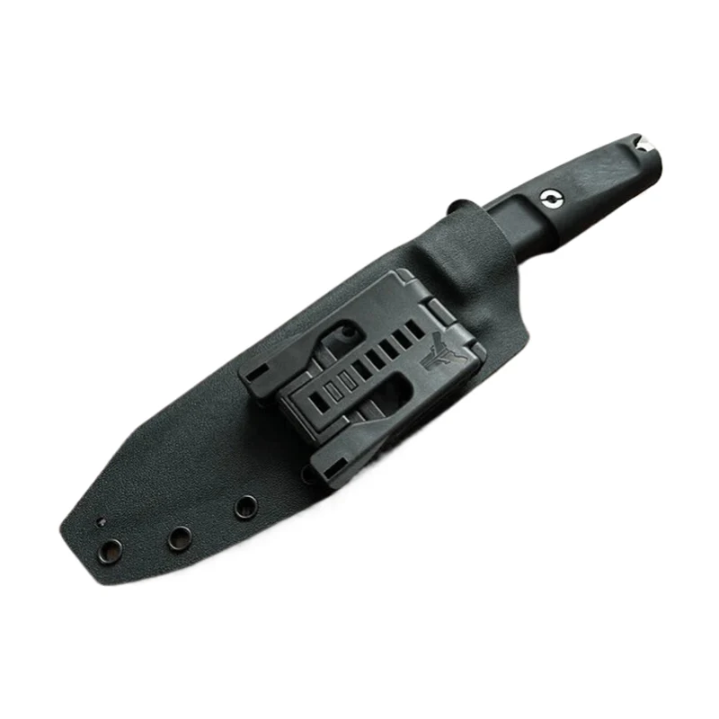 Para ikabit ang Camping Fixed Blade Knife at Sheath Shrapnel One sa sinturon sa tradisyonal na paraan, pahalang o patayo, kadalasang pinipili ng aking mga customer ang Multi-Lok. Kung gusto mong dalhin ang kutsilyo nang mas mababa, inirerekomenda ko ang isang nylon strap na may hawak na Kydex. Ang Velcro ay mainam para sa pagdadala ng kutsilyo sa sinturon. Ang Velcro ay isa ring praktikal na solusyon para sa paglakip ng kutsilyo sa strap ng backpack. Bilang karagdagan sa Kydex sheath, maaari akong mag-attach ng fire steel holder, opsyonal na may fire steel (80mm ang haba).