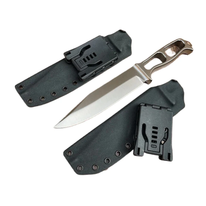 Kydex sheath para sa camping Knife. Available ang Kydex holster sa mga eyelet sa isang gilid at eyelet sa magkabilang gilid.